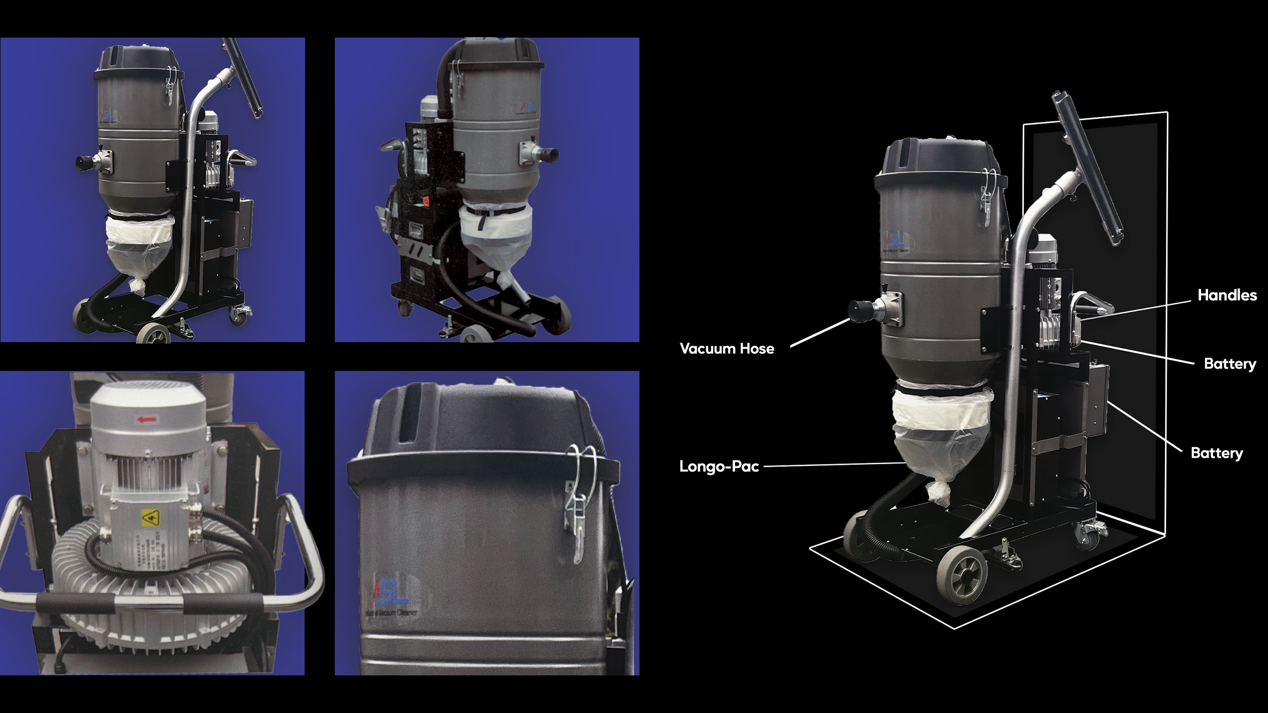 This vacuum is powered by a long lasting, powerful, 72V battery which allows no distance limit and is super convenient when you dont have power at a jobsite.