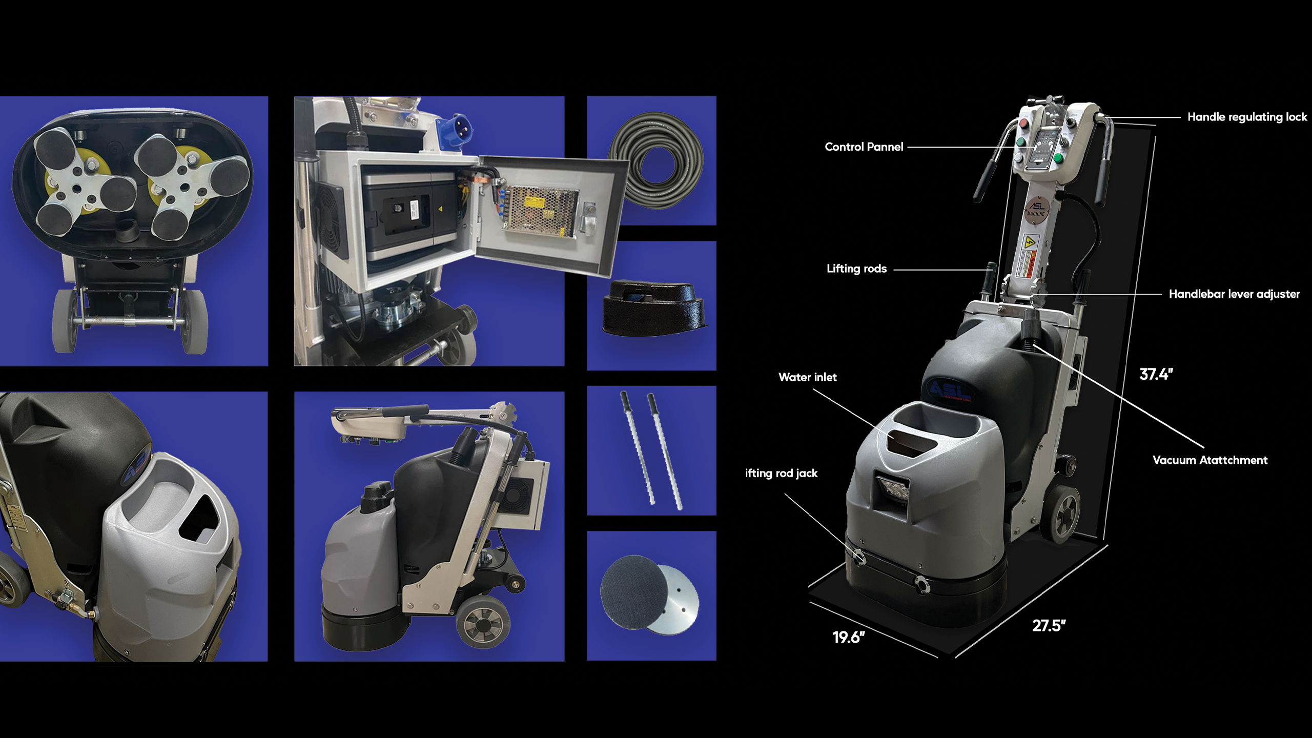 The new and improved ASL T2 is designed to grind and polish various concrete floors as well as stone and tile. Suitable for grinding and polishing small to medium sized floors. It is lightweight, flexible and easy to operate, with a tapered shroud perfect for close grinding up against walls.